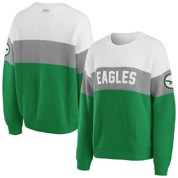 Women S Wear By Erin Andrews White Gray Philadelphia Eagles Knit Colorblock Sweater